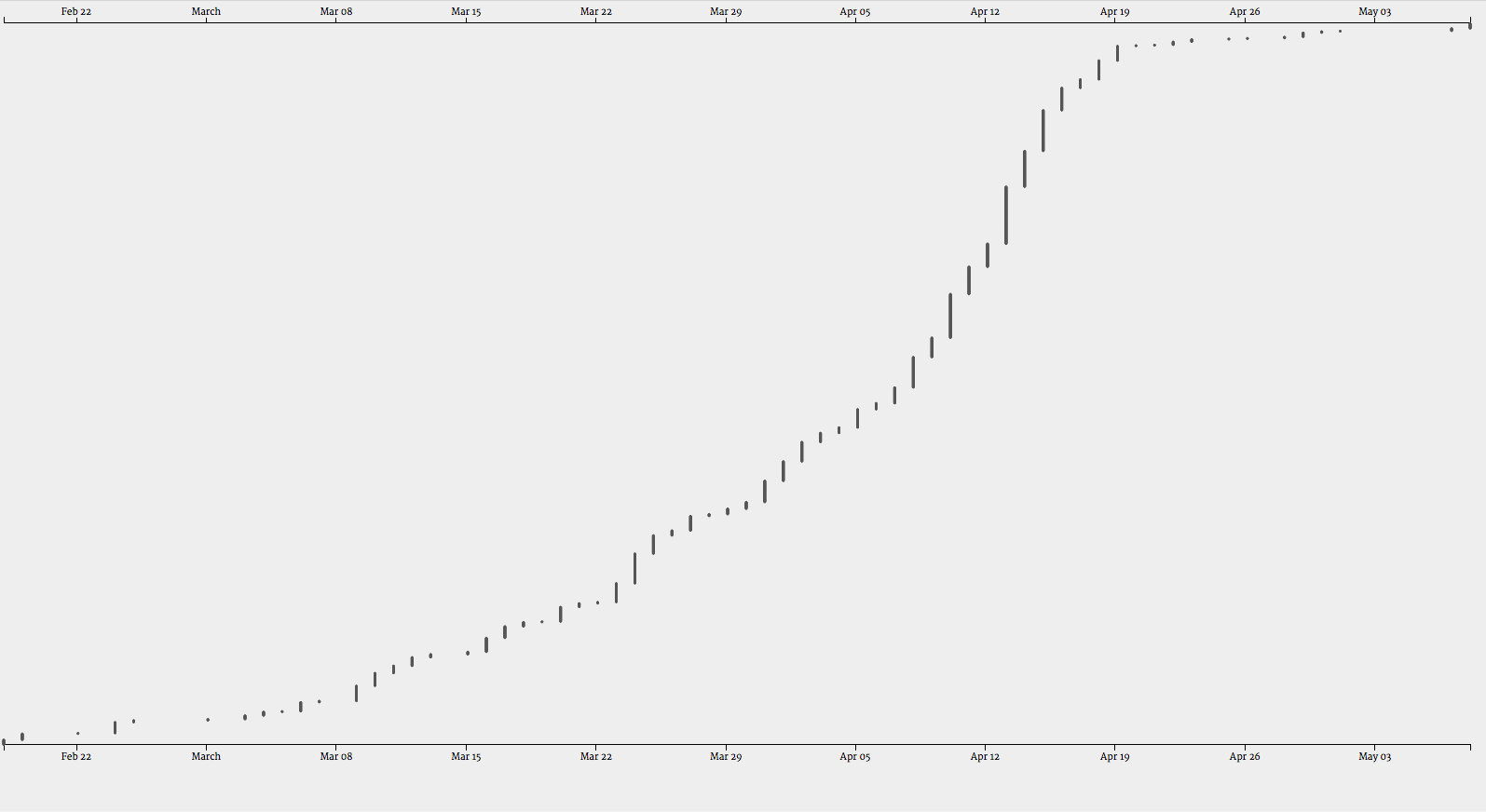 Katsotaanpas seuraavaksi hieman tarkemmin sitä, miten kampanja oikeastaan levisi sosiaalisessa mediassa. Alustavien analyysien mukaan #olohuonetentti –hashtagin Twitter-pöhinä näyttää tältä: