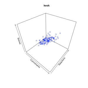 Paljon avoimia kysymyksiä ja pohdintoja, vähän valmiita vastauksia vielä toistaiseksi. Mutta kolmiuloitteiset käppyrät tuovat esille mielestäni hyvin ei keskimääräistä massaa ja eroja siinä, vaan kuinka postaukset sijoittuvat samaan aikaan näillä kolmella akselilla.