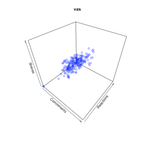 Olen mukana pohtimassa pohjoismaisten puolueiden puheenjohtajien ja puoluetilien käyttöä viimisimmissä vaaleissa muutaman muun tutkijan kanssa. Sen takia olen nyt tuijoitellut sosiaalisen median tilien sisältöä ja olemme pähkäilleet mikä on tarina jonka haluamme datalla kertoa. Täysin eksploratiivista tutkimusta siis. Yksi suunta jota olemme kovasti pohtineet on ollut ymmärtää miten yleisö reagoi, eli kuinka he uudelleenjakavat, kommentoivat tai käyttävät hienoja reaktiohymiöitä Facebookissa puolueiden viestien kohdalla. Koska tästä tulee kivasti kolme dimensioita, kokeilin miten tässä voisi käyttää hienoja kolmiulotteisia käppyröitä apuna.